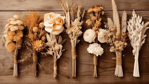 Oltre alle loro qualità estetiche e all’attraente aspetto country, i fiori secchi offrono una serie di vantaggi nell’organizzazione di un matrimonio o di una cerimonia simile. I fiori secchi sono più facili da conservare, assemblare e mantenere. I bouquet di fiori secchi non richiedono acqua, il che è pratico e fa bene al pianeta. Infine, possono essere conservati e utilizzati per la decorazione di interni, il che rappresenta una fonte di risparmio e di lotta allo spreco.