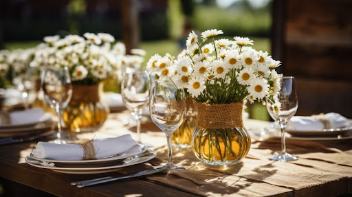 Con i suoi petali candidi di colore bianco e il suo centro giallo che ricorda un sole, la margherita è simbolo di innocenza, positività e purezza, questo tavolo celebra la bellezza semplice e naturale dell’unione degli sposi. Fin dall’antichità, infatti, questo fiore è legato a significati di nobiltà d’animo.