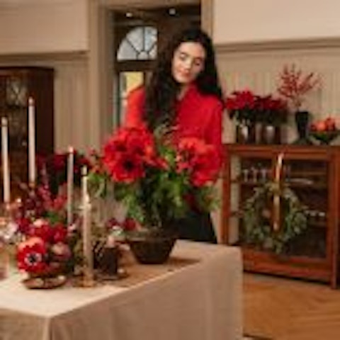 Se invece ami gli addobbi natalizi dal grande impatto scenografico, non possiamo che suggerirti un centrotavola lungo e sui toni del rosso composto da bacche di Ilex, Stella di Natale e sfere in velluto.