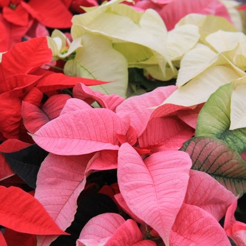 Non esistono solamente Stelle di Natale rosse: arancioni, bordeaux, bianco crema, gialle e con diverse sfumature di rosso, ma anche rosa oppure bicolore, sono tantissime le varietà.